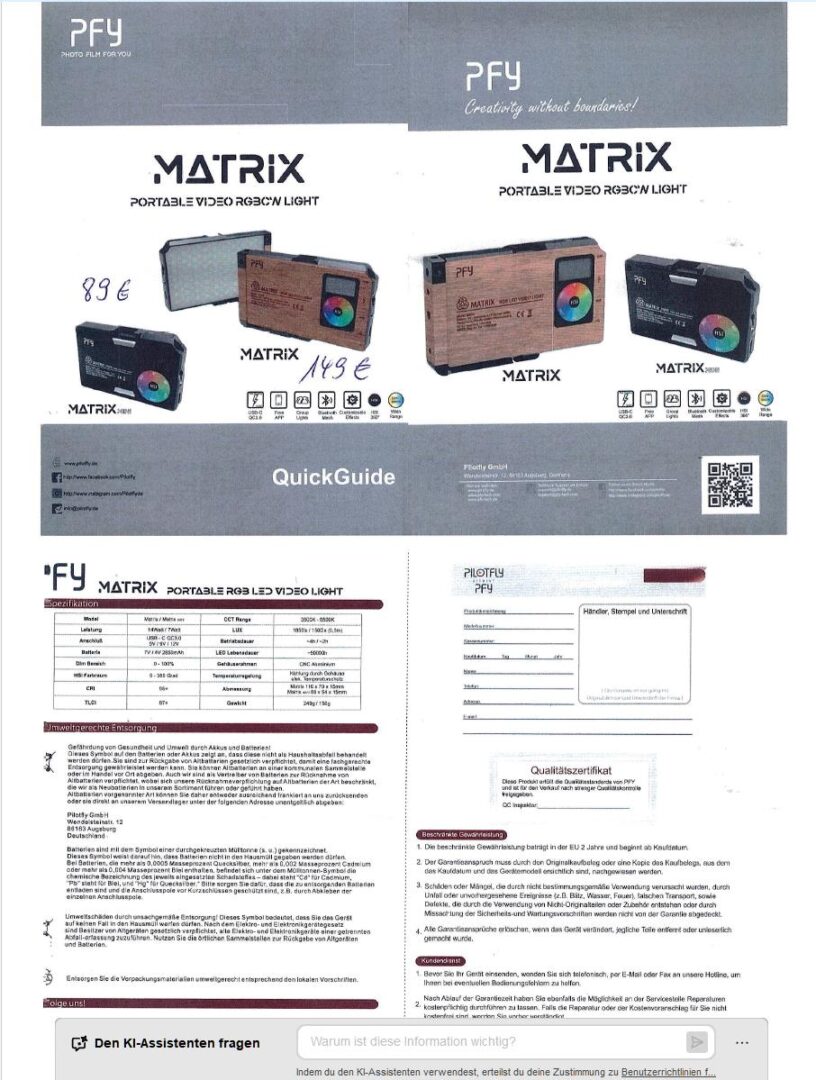 Tipps für Filmer PDF-Laden Filmen mit Verstand eine Broschüre von Rolf Hülsebusch PDF-Laden Workshop vom 24.03.2026 (Werbung)An diesem Abend wurden viele verschiedene LED-Lampen vorgestellt. Diese Lampensind teilweise als Videolicht geeignet. In der PDF-Datei finden sich viele nützliche Hinweise.